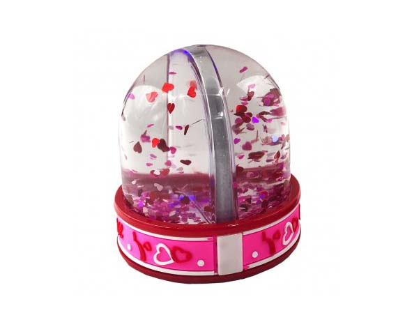 • Globul este umplut cu apa si cu inimioare lucioase de culoare roz si albe.